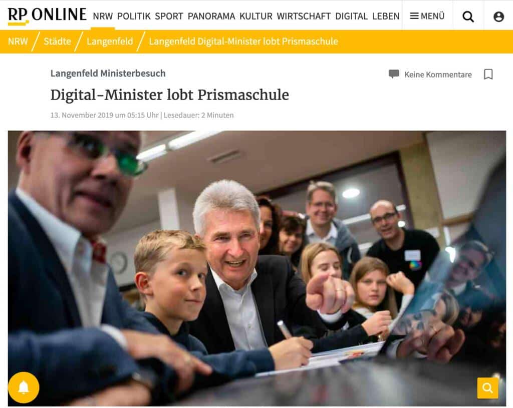 Schule in Distanz – an der Prismaschule führte und führt diese Meldung nicht zu Schweißausbrüchen und Panik! Denn wir arbeiten seit einigen Jahren mit MS365 Teams, so dass wir im Frühjahr 2020 gut auf das Distanzlernen umsteigen konnten. Dies wurde auch schon im November 2019 bei einem Besuch von Digitalminister Pinkwart ausdrücklich gelobt.