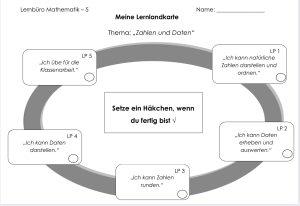 Die Arbeit im Langenfelder Lernbüro besteht aus einer Lernlandkarte sowie den einzelnen Lernplänen pro Unterrichtseinheit. Zur besseren Orientierung können sich die Schüler:innen in ihren Klassen an den sogenannten Fahrplänen orientieren.
