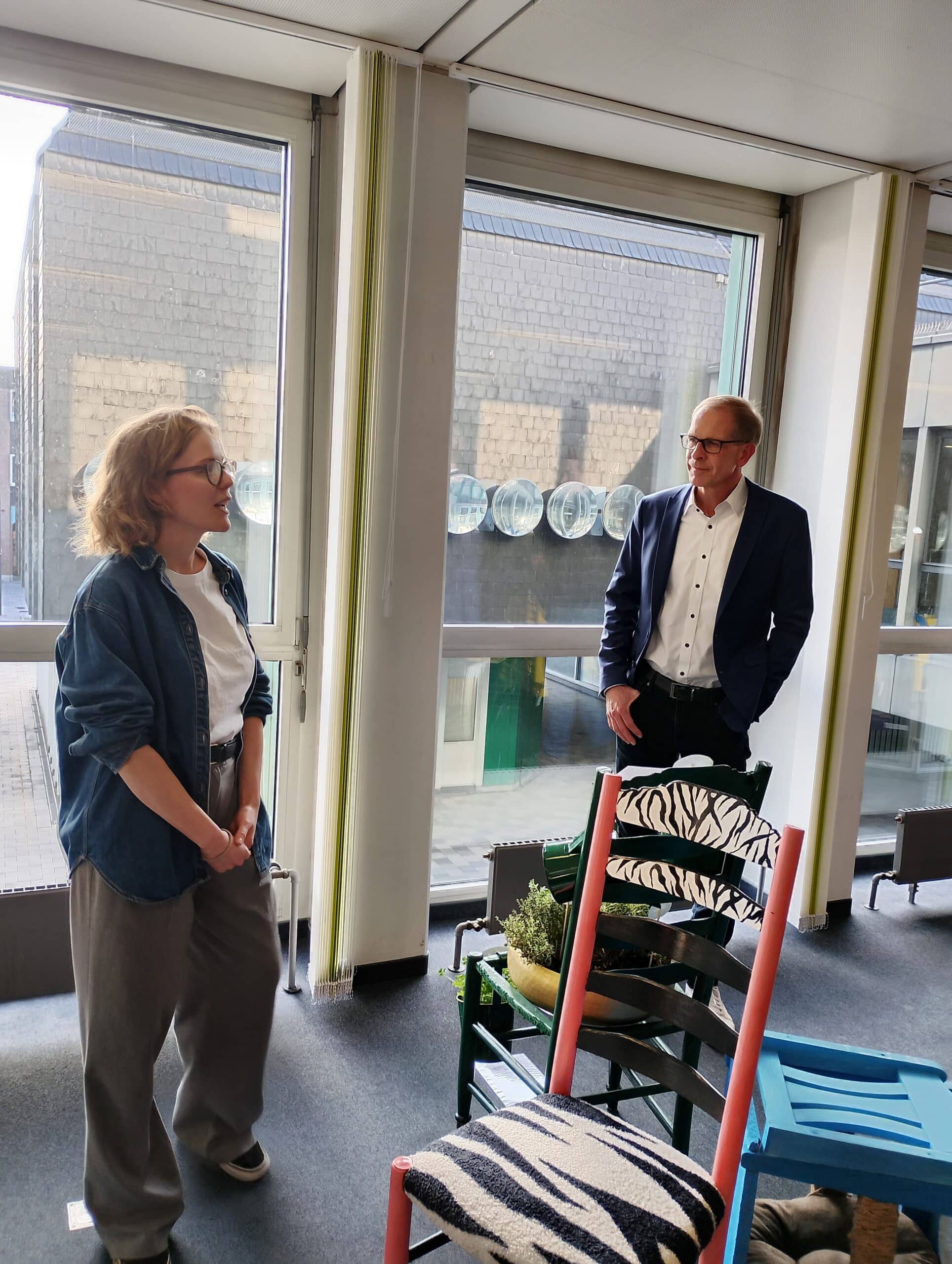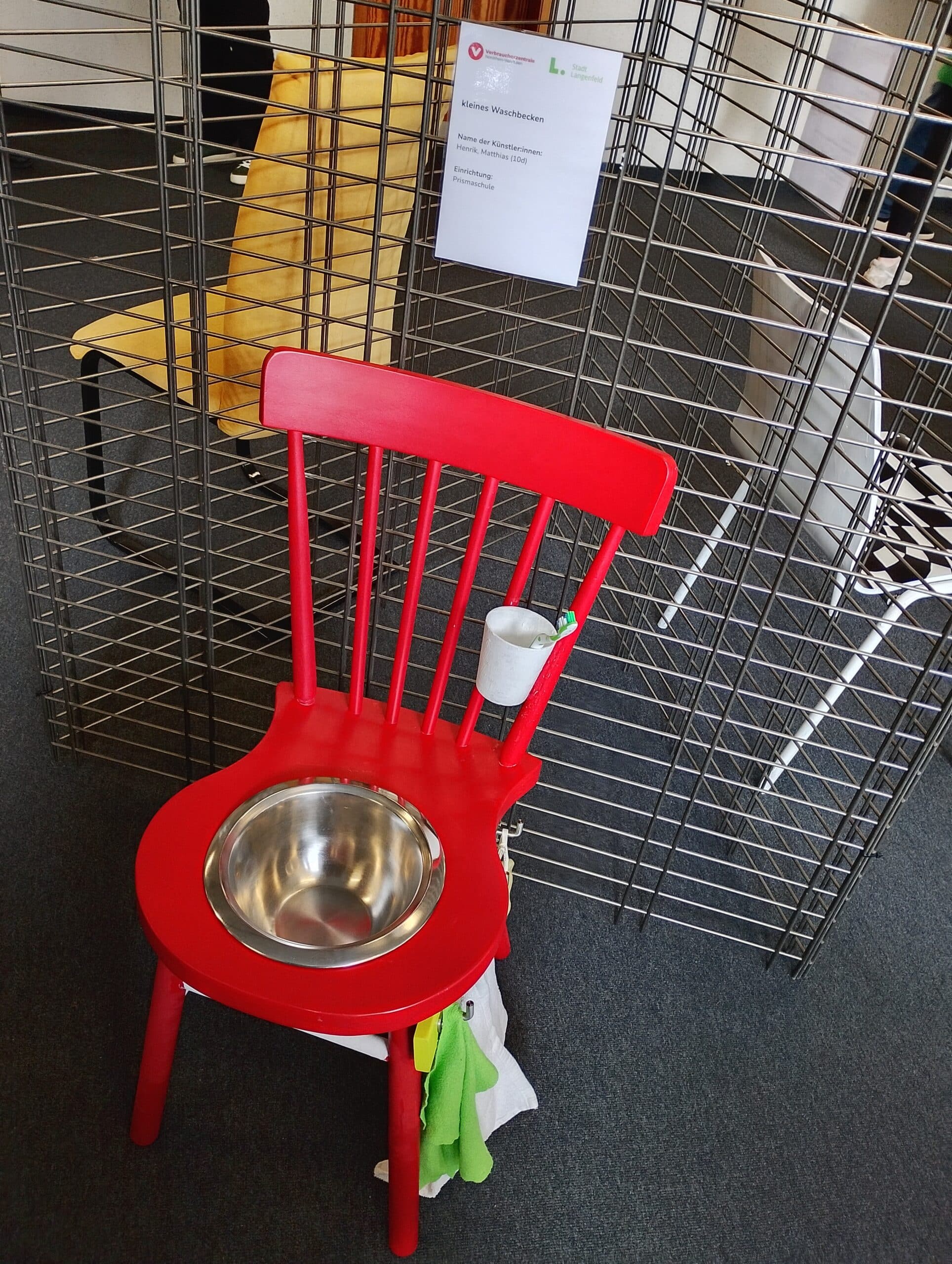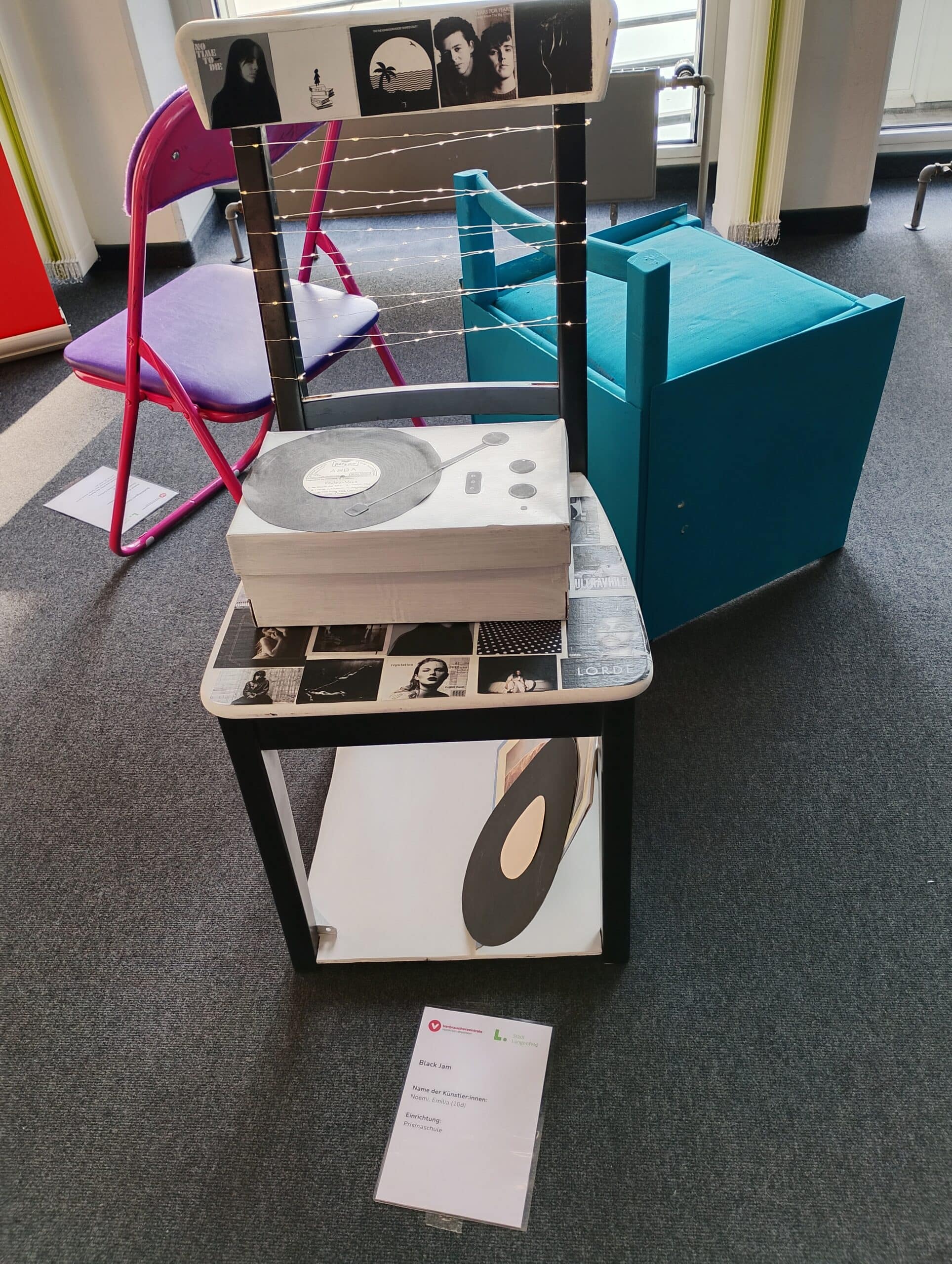 In einem Wettbewerb der Umweltberatung der Verbraucherzentrale in Langenfeld gemeinsam mit der Stadt Langenfeld haben Schülerinnen und Schüler dreier Schulen gebrauchte Stühle repariert und verschönert.