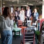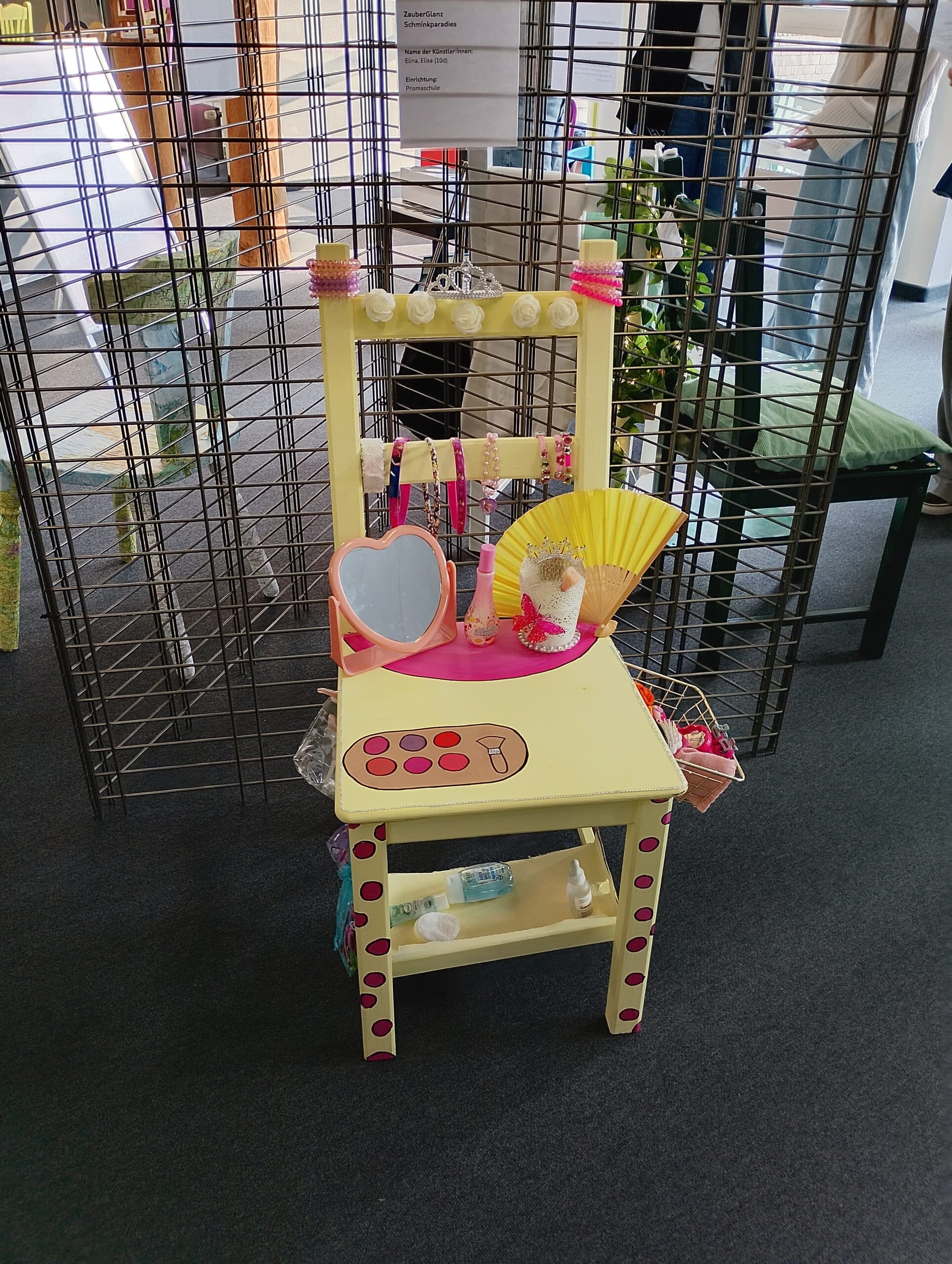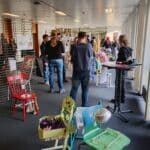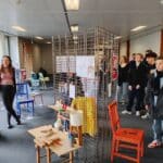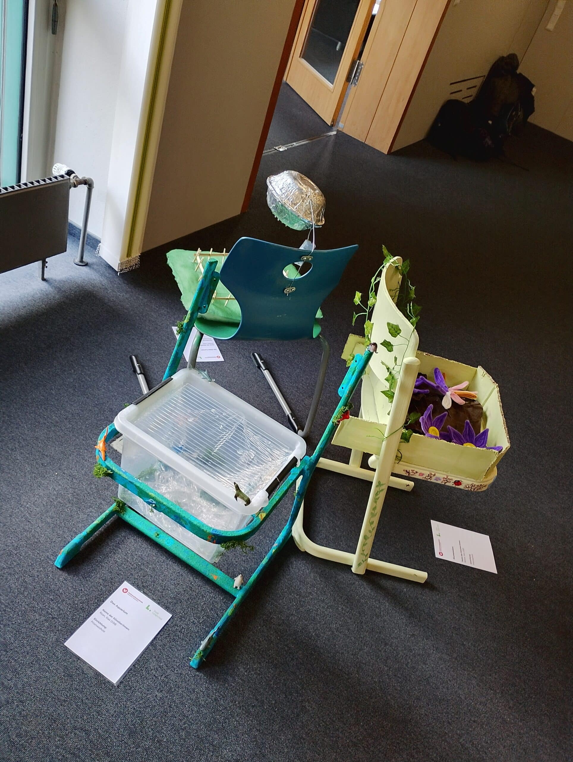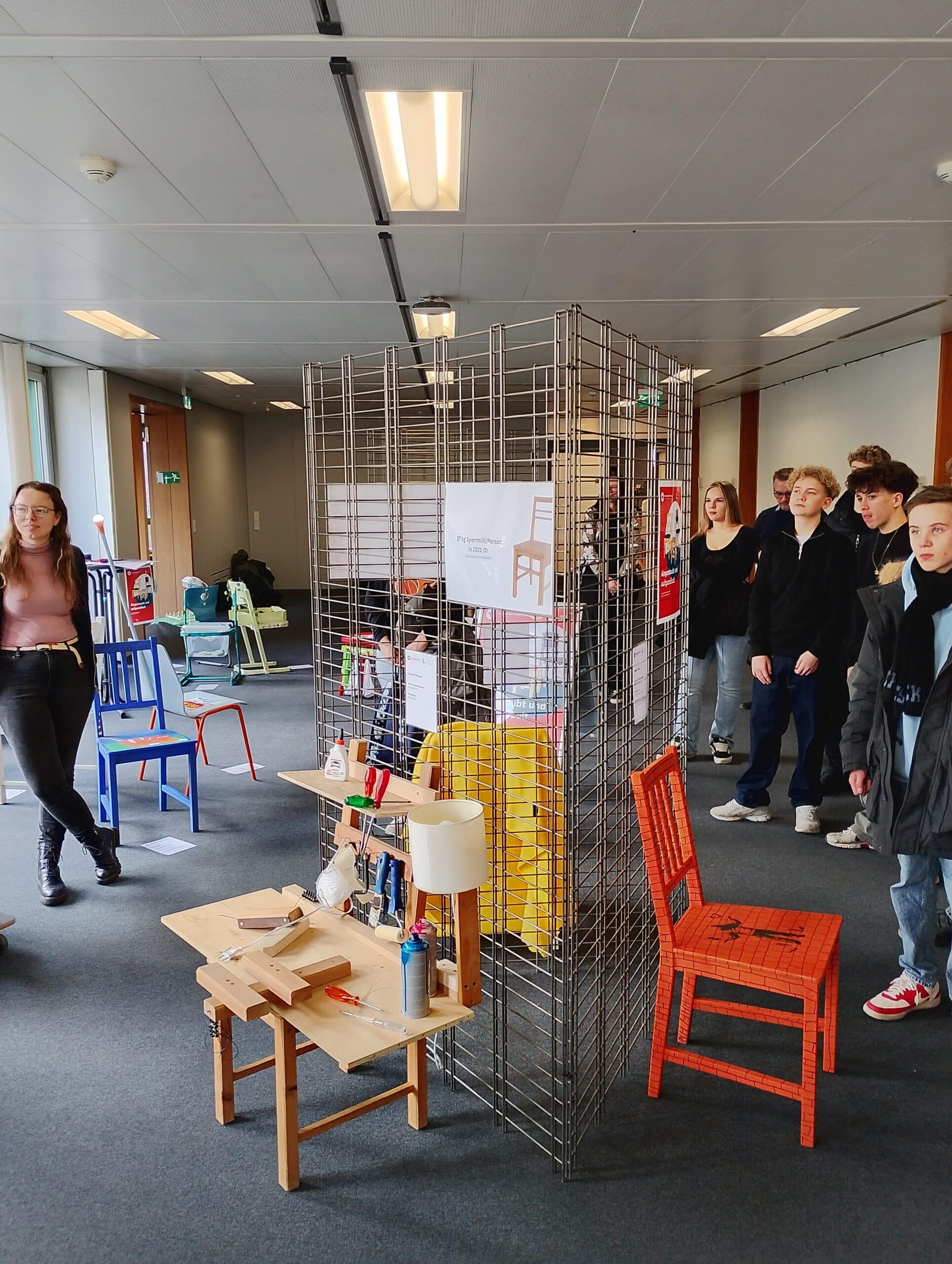 Ausstellung zum Upcycling-Wettbewerb zeigt alte Stühle in neuem Glanz.