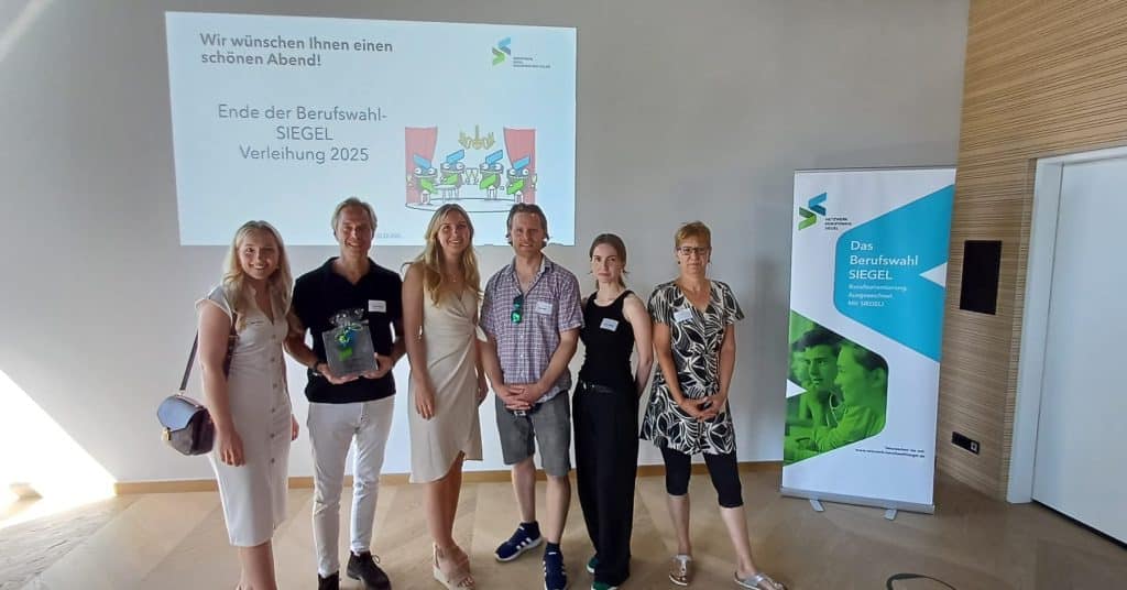 Am 30.06. durfte unser Team der Studien- und Berufswahlorientierung nach äußerst erfolgreicher Rezertifizierung für die kommenden drei Jahre das Berufswahlsiegel in Empfang nehmen.