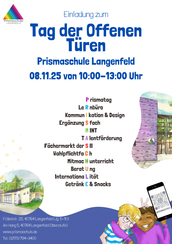 wir laden Sie/euch herzlich ein, uns am Tag der offenen Türen am Samstag, den 8. November 2025 von 10:00 bis 13:00 Uhr zu besuchen und unsere Schule sowie das pädagogische Konzept kennenzulernen.